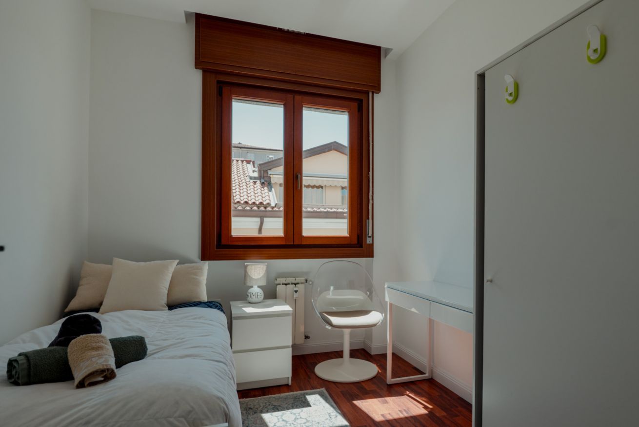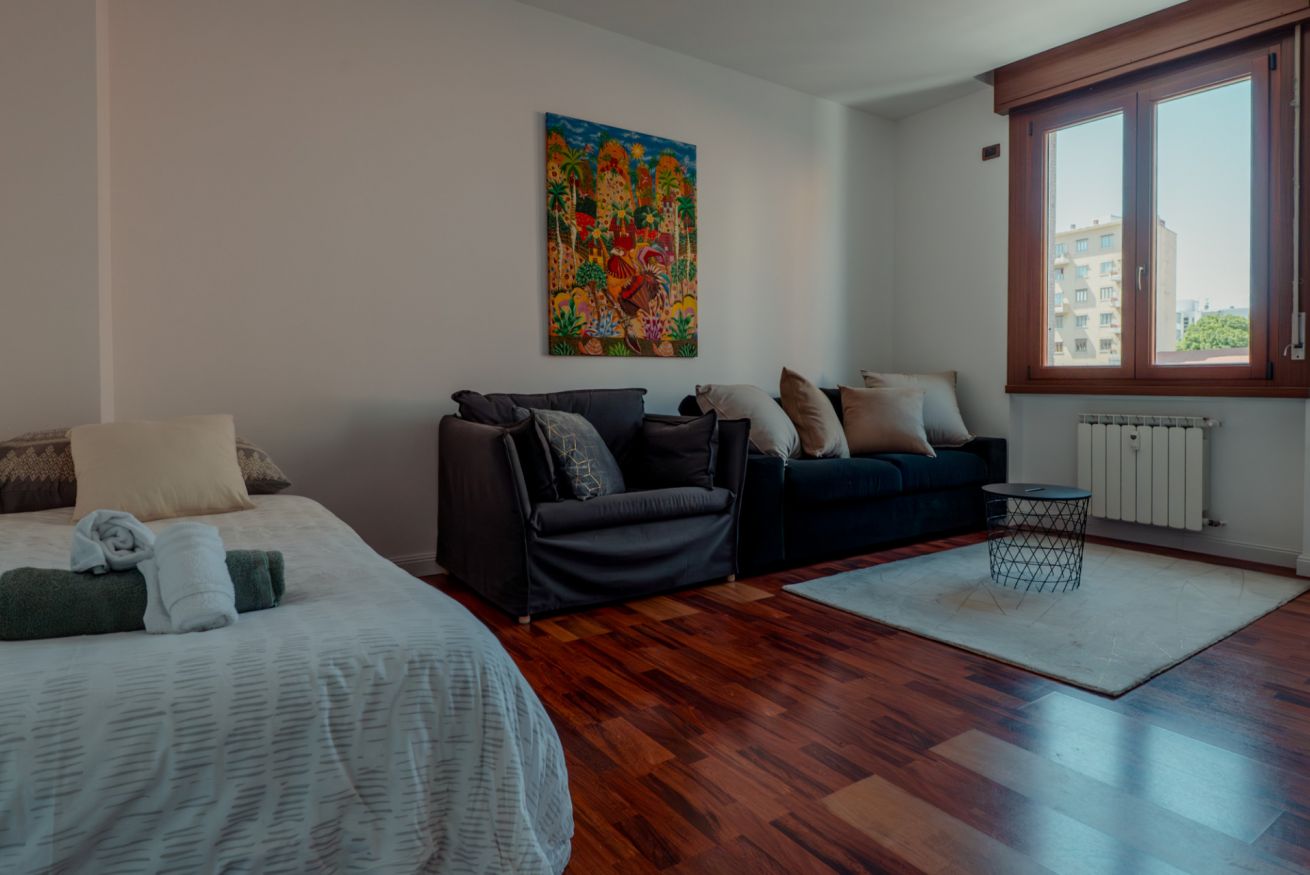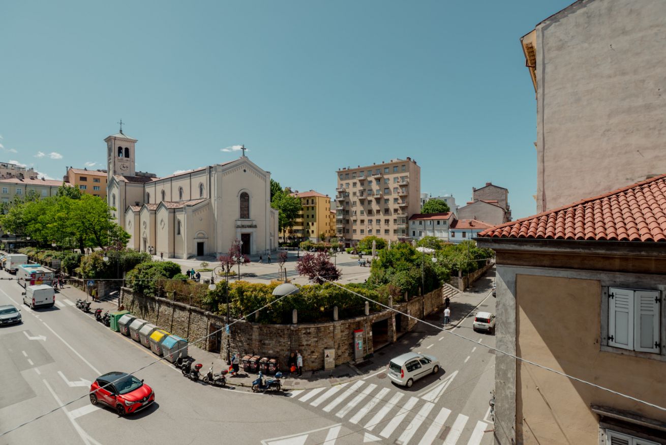 Il punto forte è sicuramente il piccolo balcone affacciato sulla piazza, che offre una vista privilegiata sulla vita del quartiere: tra il passaggio degli autobus, i mercatini rionali e il continuo andirivieni di persone, è un ottimo punto di osservazione per vivere appieno la quotidianità triestina.