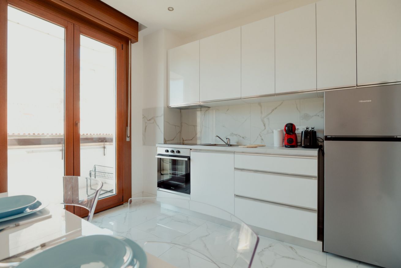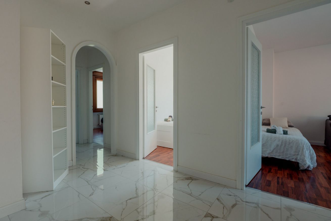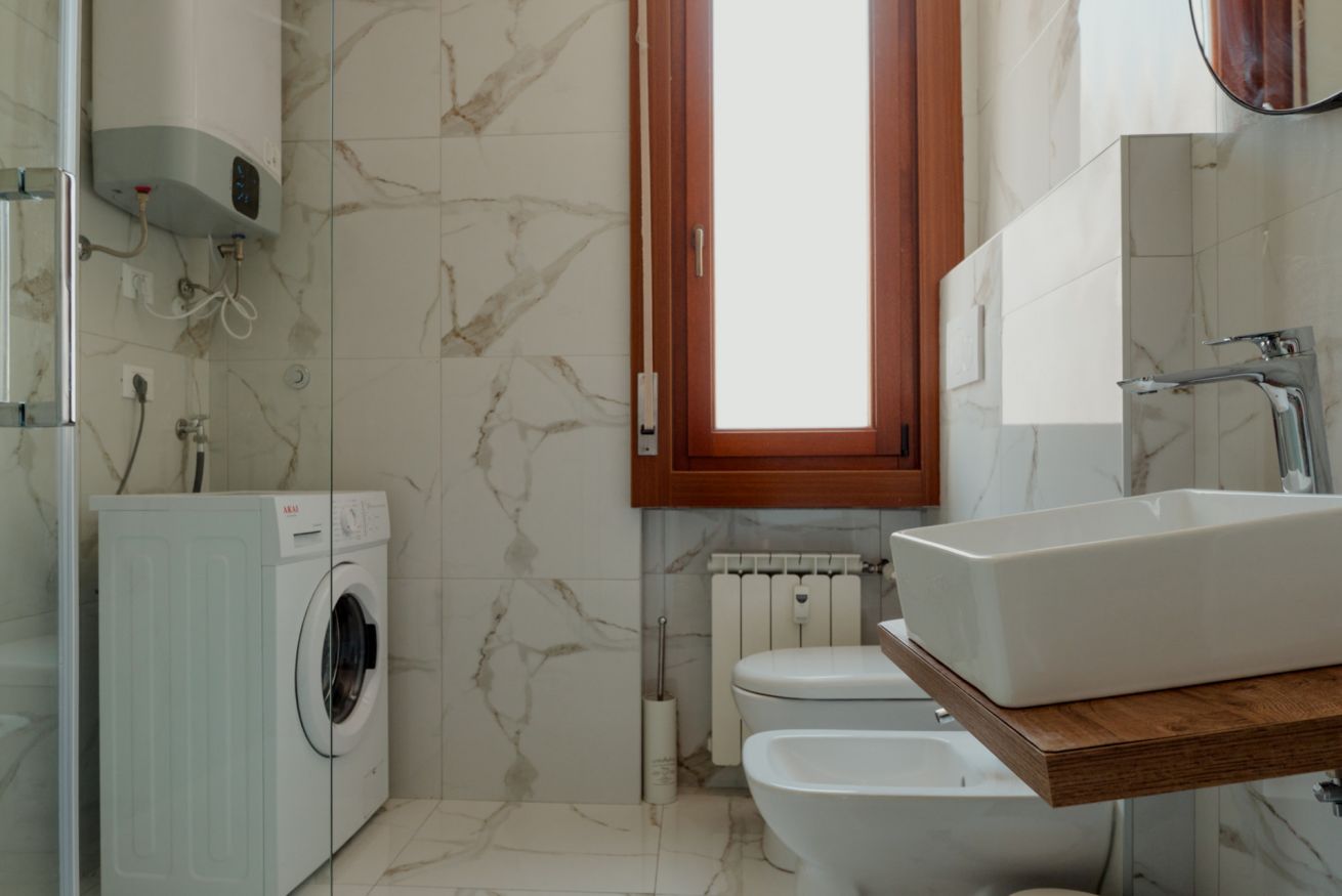 L’appartamento si trova al piano 3 di un edificio servito da ascensore, rendendo comodo l’accesso anche con bagagli o per soggiorni più lunghi. Può ospitare comodamente fino a 5 persone ed è composto da una camera matrimoniale, una camera singola, un soggiorno con divano letto doppio e TV, una cucina attrezzata con forno e fornelli, aria condizionata, e un bagno completo con doccia, bidet e lavatrice.