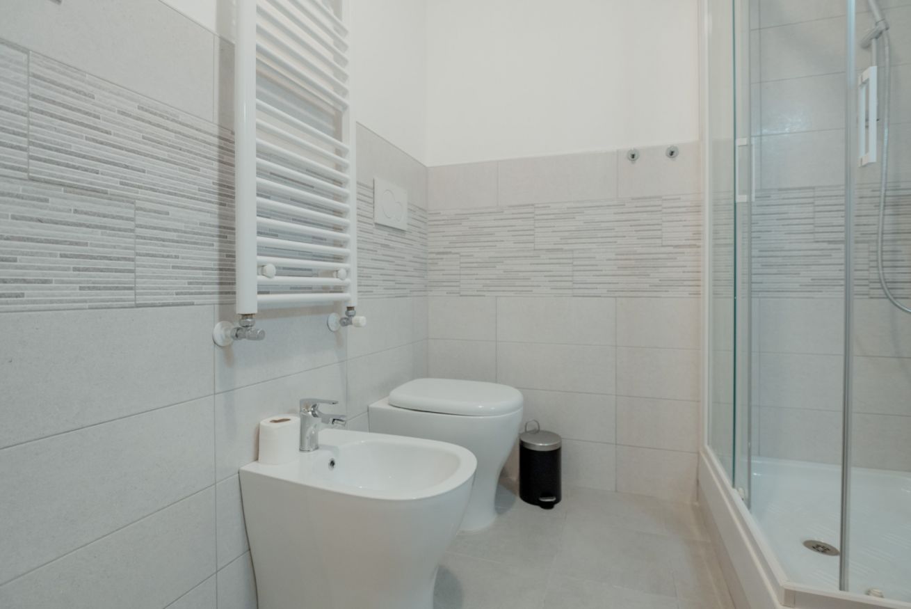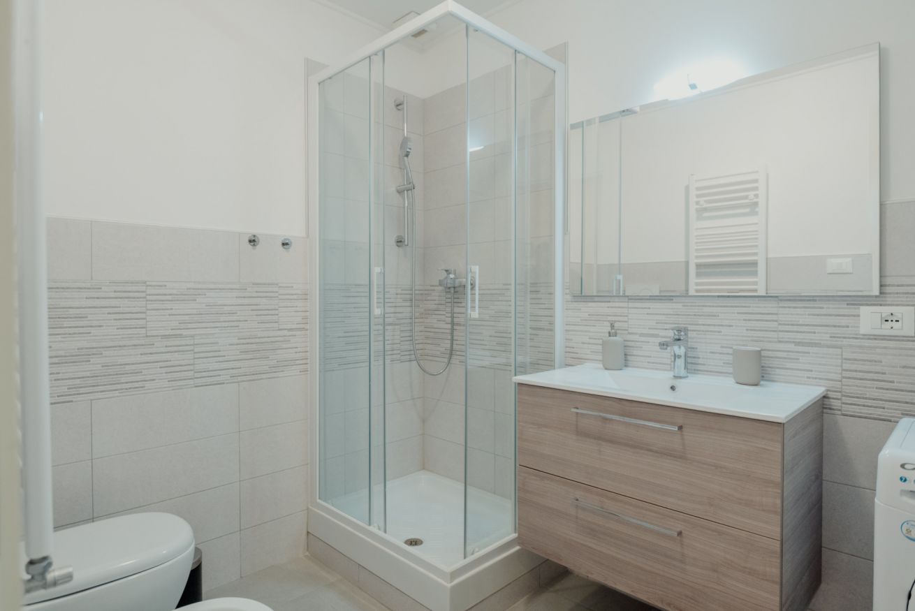 Il bagno moderno è dotato di una doccia, perfetta per rilassarsi dopo una giornata in giro per la città. A disposizione degli ospiti ci sono anche una lavatrice, utile per soggiorni più lunghi, l’aria condizionata, una TV per i momenti di relax e un bollitore per godersi una bevanda calda in qualsiasi momento.